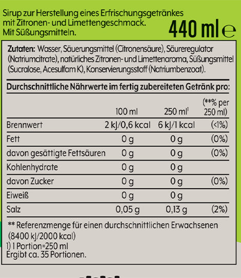 Inhalt: 440ml Getränkesirup, ausreichend für 9 Liter Fertiggetränk.