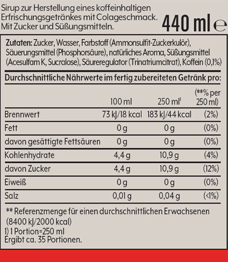 Inhalt: 440 ml Getränkesirup, ausreichend für 9 Liter Fertiggetränk