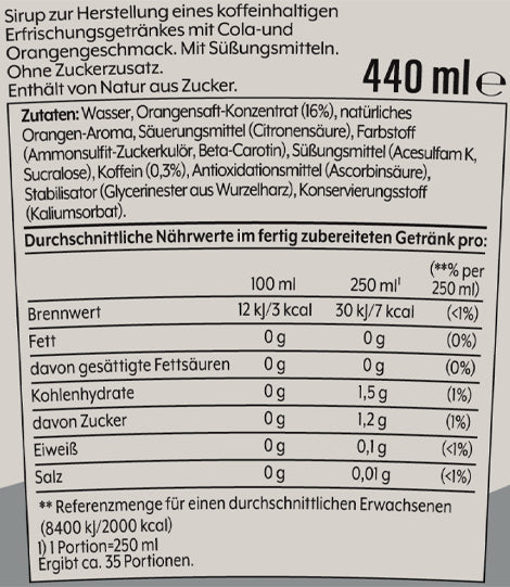 • 4x Cola + Orange ohne Zucker Sirup 440 ml