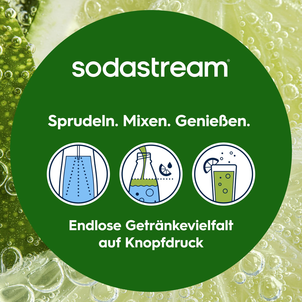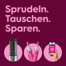 Hinweis: Das Füllvolumen bis zur Fülllinie zum Aufsprudeln ist kleiner als das volle Flaschenvolumen. Weitere Informationen findest du in der Gebrauchsanleitung.