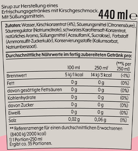 Inhalt: 440 ml Getränkesirup, ausreichend für 9 Liter Fertiggetränk