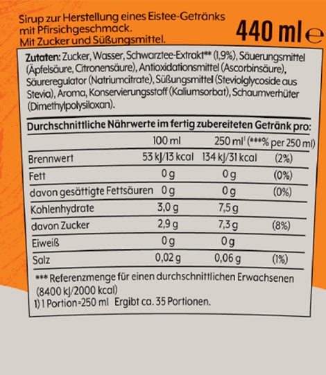 Eine Flasche ergibt ca. 9 L* Erfrischungsgetränk (* bei Zubereitung nach Vorschrift). Erst sprudeln, dann Sirup mischen!