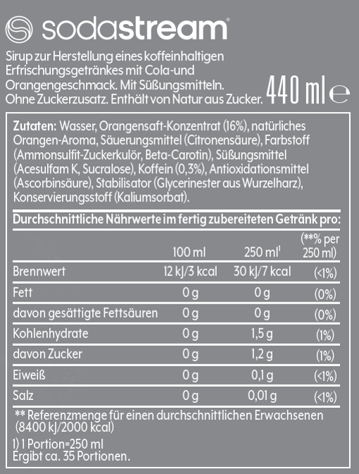 Inhalt: 440 ml Getränkesirup, ausreichend für 9 Liter Fertiggetränk