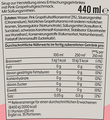 Pink Grapefruit ohne Zucker Sirup 440 ml