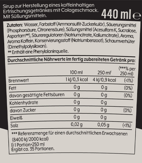 Inhalt: 440ml Getränkesirup, ausreichend für 9 Liter Fertiggetränk.