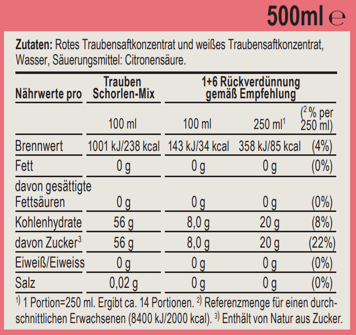 • • 50 % aus rotem- und weißem Traubensaftkonzentrat